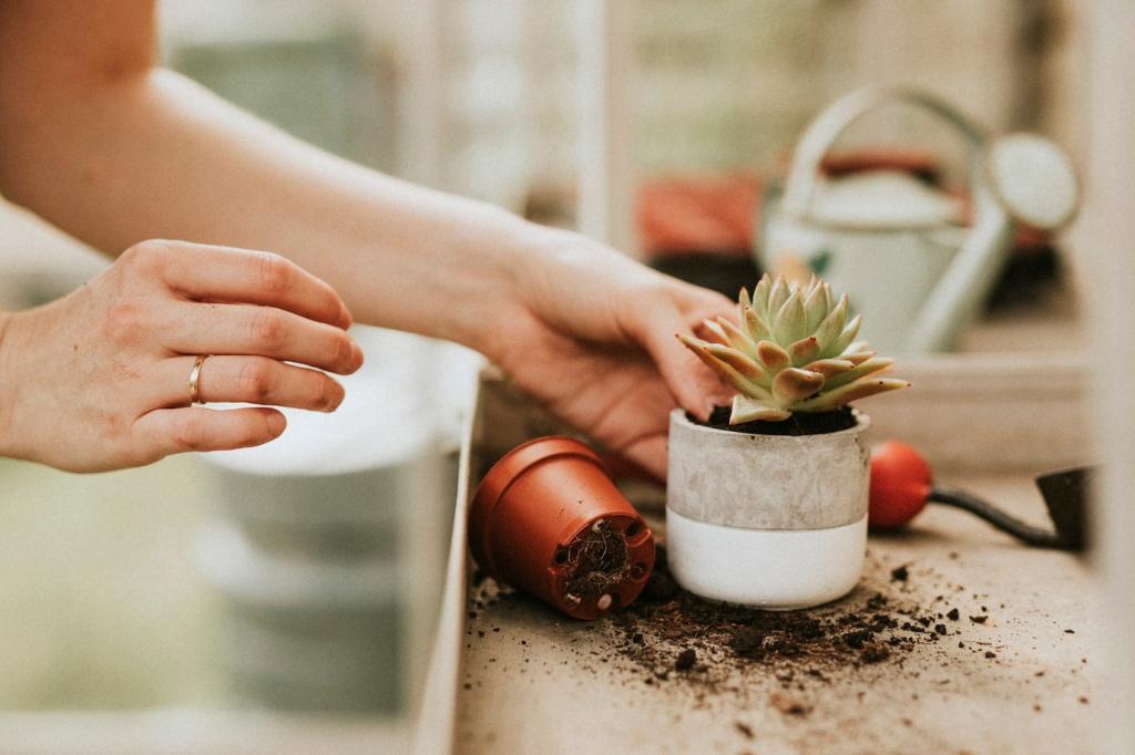 Wir wählten eine dichte, mit Harz gebundene Papierverbundplatte mit hohem Recyclinganteil; sie ist hart, reparierbar und überraschend warm. Ein Korkstreifen entlang der Wand fängt Stöße ab. Nach einem Jahr: kaum Kratzer, schöne Patina. Würdest du heiße Töpfe direkt abstellen? Teile deine Erfahrungen und Tipps.